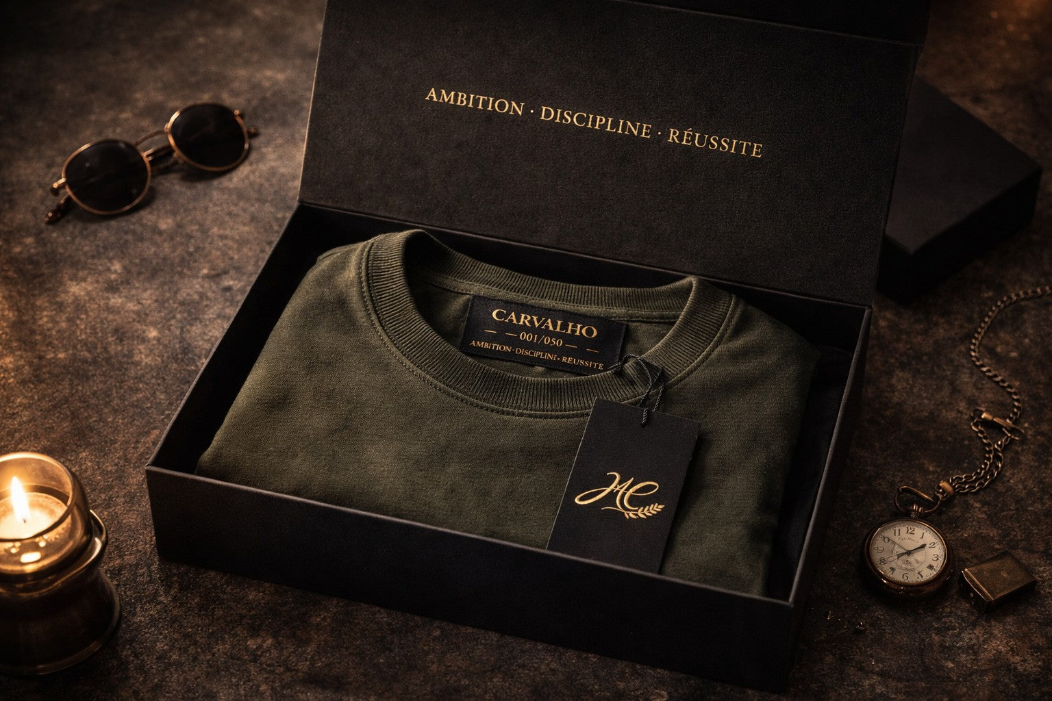 La première collection CARVALHO arrive bientôt. Une pièce pensée pour ceux qui visent plus, qui avancent avec discipline, et construisent leur réussite. ⚡ 50 pièces seulement.
